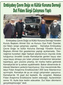 KEÇEDOK Y.K Başkanımız Ahmet Gür ve Y.K Üyesi Fatih Özerdal Kemaliye ve köylerinden topladıkları 24 adet farklı dut fidanı, 3 adet farklı verik elması fidanı, 3 adet farklı karadut fidanı, Tarım ve Hayvancılık Bakanlığı Malatya Enstitüsü Başkanı Abdullah Bey'e teslim edildi. Aşılanan fidanların Ekim ayında teslim edileceği belirtildi.
